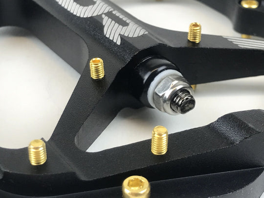 A premium CNC machined aluminum platform pedal that is ultra-light, super thin, and extremely grippy. ULTRA-THIN CNC MACHINED 6061 T6 BODIES SMOOTH, EASY-TO-MAINTAIN & ADJUSTABLE BUSHING/BEARING SPINDLE SYSTEM ALLEN BOLT TRACTION PINS THREAD FROM THE...Regular price $99.99 -